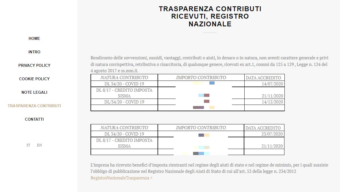 2) Pubblicheremo una Privacy e Cookie Policy, eventale prospetto Erogazioni pubbliche già pronta che potrai linkare con il codice HTML che ti forniremo