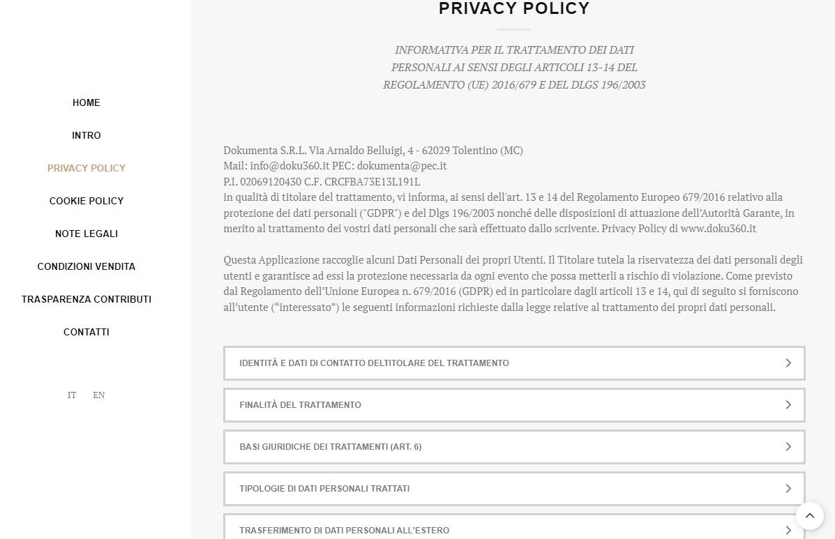 La soluzione Laas360® è ottimizzata per mostrare le informazioni legali della tua azienda in conformità al GDPR